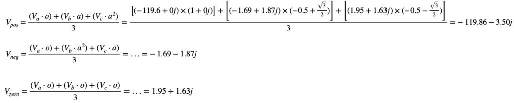 Mathematically, the positive, negative and zero sequence complex outputs can be computed with the following linear algebraic equation: