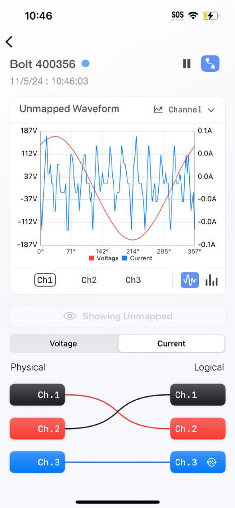 Clearly, a solution is needed that eliminates the extra risk, reduces man-hours spent correcting a CT hookup, and that ensures that the correct data is recorded in the manner the user intended. Fortunately, an incorrect CT hookup can be adjusted logically inside the Bolt itself, while still providing users with the flexibility to hook up their devices in whatever configuration they desire. We came up with the ‘Phase Correction’ feature that makes fixing an incorrect CT hookup a simple click of a button. This can be done in the field using the PMI View iOS app, or from the comfort of your office via a network connection.
