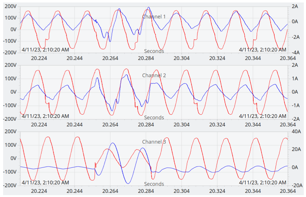 Another consideration for backup power sources is inrush or starting current, which is the higher current briefly drawn by equipment at start versus the typically running load. Large commercial equipment will typically list the expected inrush current, but smaller devices may not. Measuring and analyzing inrush current is beyond the scope of this document, but is covered in Analyzing Motor Startups with Event Capture and Impact Loading. Be aware that inrush current contributes to voltage sag, covered in Voltage Sags and Power Quality.