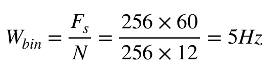 where Wbin is the bin width in Hertz of the resulting DFT, Fs is the sampling frequency and N is the number of samples. PMI recorders sample waveforms at 256 samples per cycle (not including transient capture which is 1 MHz sampling rate). Consequently 256 x 60 and 256 x 12 appear in the equation above. A simple factoring shows that the 256 cancels leaving