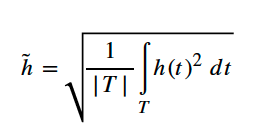 The root mean square (RMS) of some function h(t) is calculated over some interval T by: