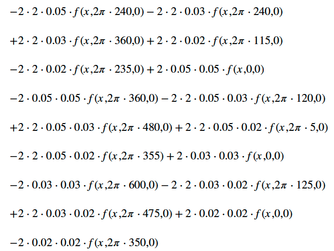 Now substituting all the f(x,0,0) terms with and all the harmonics of 50 Hz to 0, we get