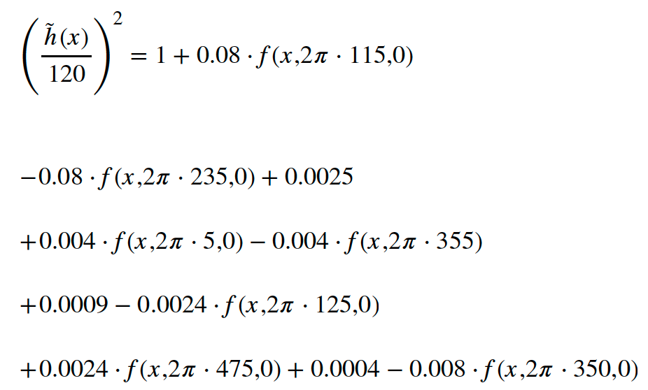 We can complete the calculation for rms by substituting the result of the integral into the equation and we see that given an input h(t) which can be represented by a sum of sine waves, the rms at a point x over the last cycle is given by: