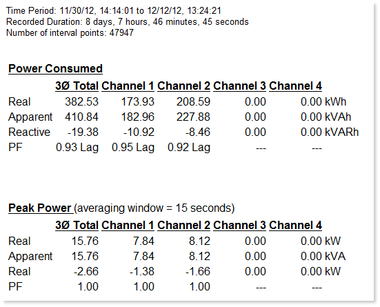 Each data point in the resulting strip chart will be an average of the values measured over the specified interval. Additionally, the minimum and maximum RMS voltage and current for each interval will be recorded.