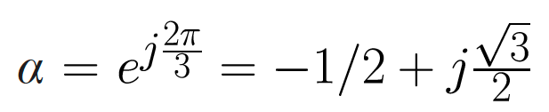 Which represents through complex multiplication a counterclockwise rotation in the plane by 120°. α2 represents a 240° counterclockwise rotation and α3 = 1 represents the null rotation. In order to determine what V₀, V₁, V₂ must be, 3 equations need to be written down, one for phase A, one for phase B, and one for phase C.