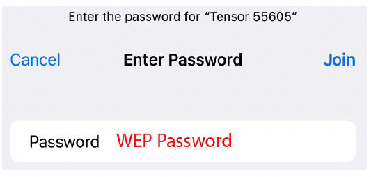 Once you’ve identified the correct Tensor network, tap on it to initiate a connection. When prompted for a password, enter the WEP key that was delivered with the Tensor.