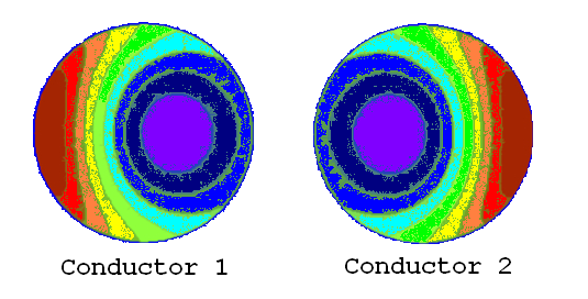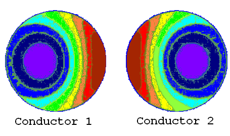 Another effect that is very closely related to skin effect is the proximity effect. This effect happens when two or more AC-carrying conductors are placed close to each other so that their magnetic fields interact. The varying magnetic field from one conductor induces a field into the adjacent conductor. This magnetic field causes a redistribution of the current in both wires, causing more current to flow on the wire’s side facing away from the other wire. Each conductor affects the other in mirror fashion. This redistribution of the current in the wires increases the AC resistance from the DC value.