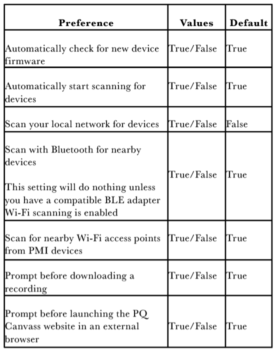 There are many preferences that users can change to tailor their experience in PMI View. Most notable are the options to enable/disable certain types of device scanning by default, or to have PMI View automatically start scanning when opened.